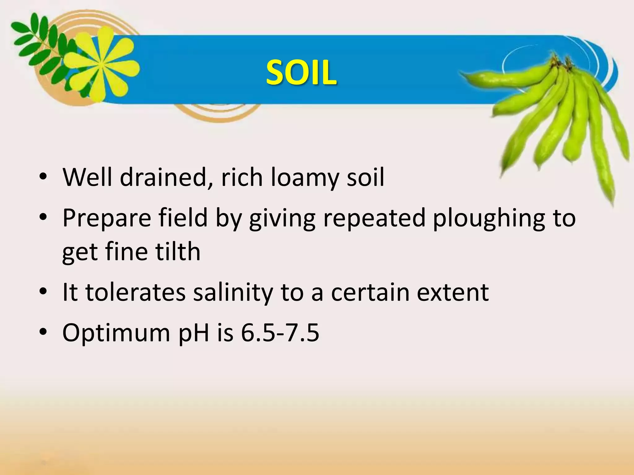• Soils should be fertile and rich in organic matter.